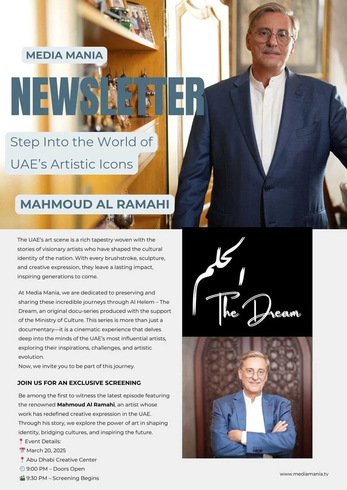 Be among the first to witness the latest episode featuring the renowned Mahmoud Al Ramahi, an artist whose work has redefined creative expression in the UAE, Through his story, we explore the power of art in shaping identity, bridging cultures, and inspiring the future,